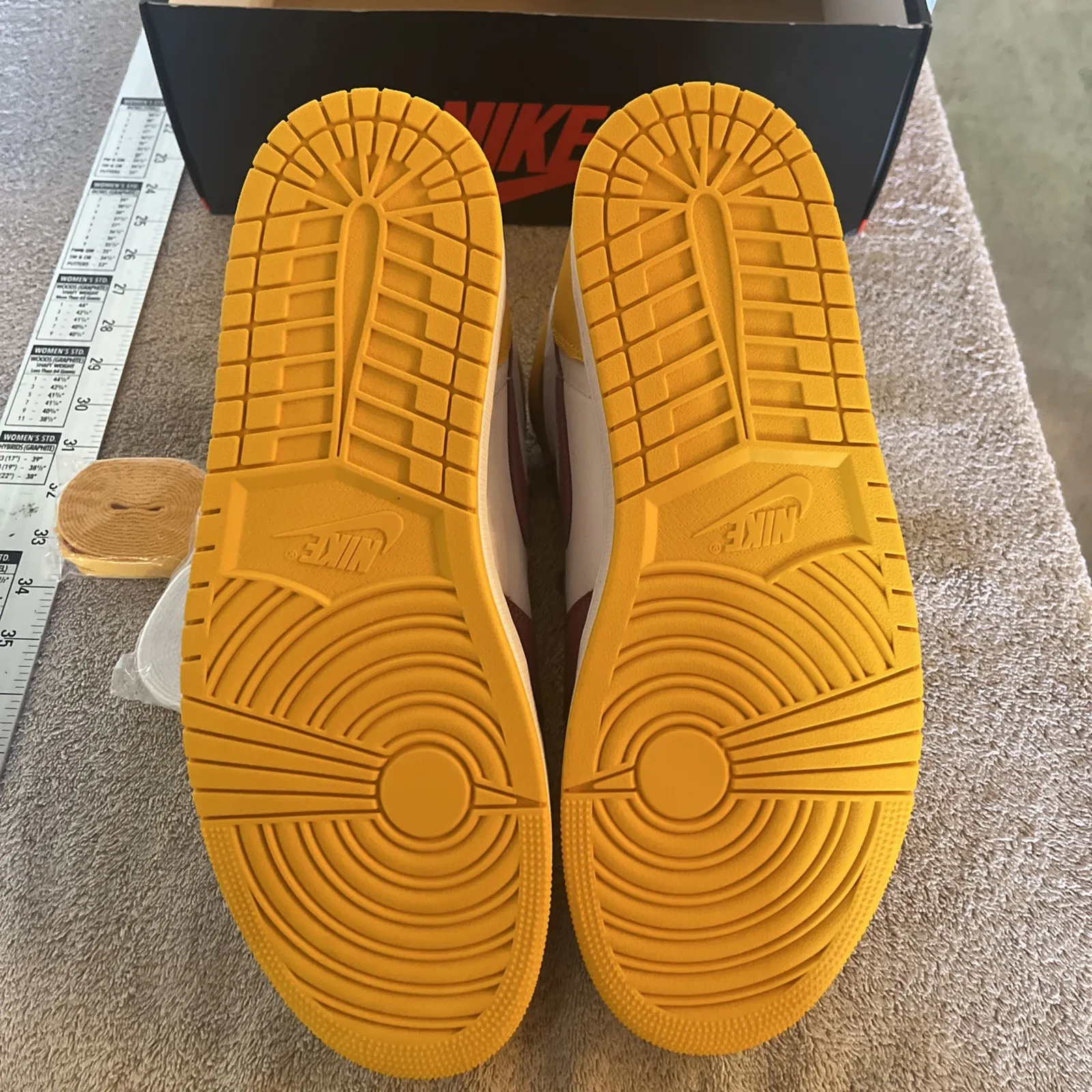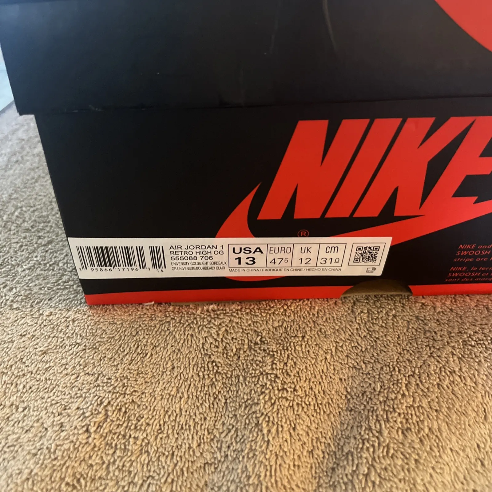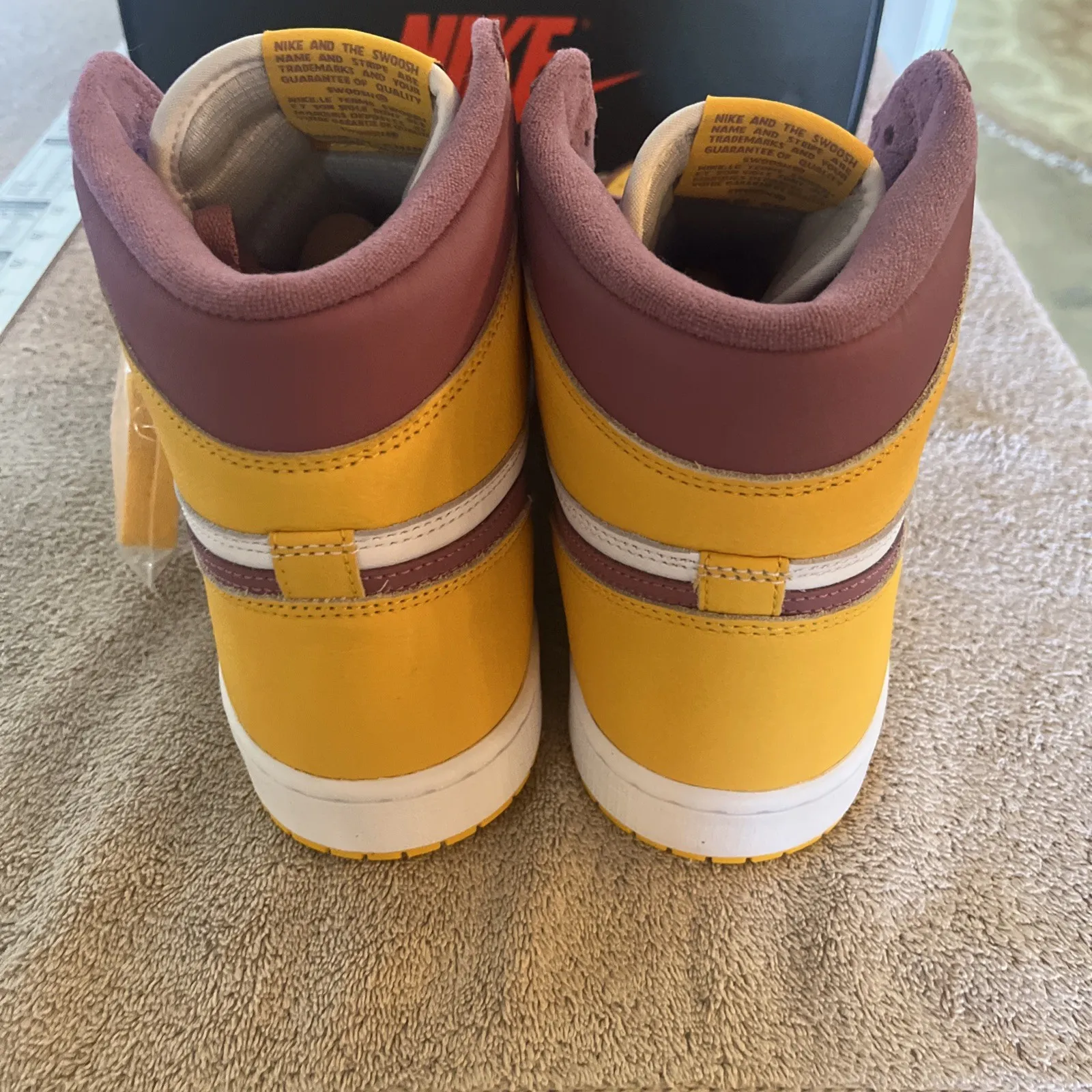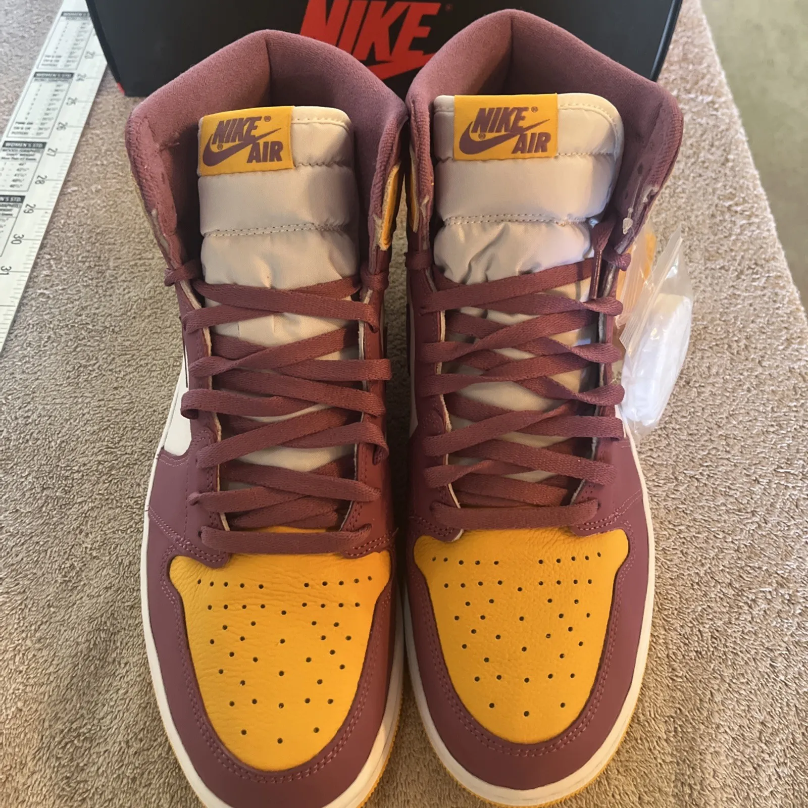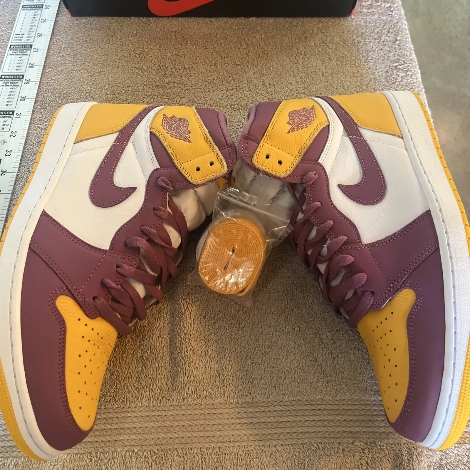 New pair of Air Jordan 1 Retro High OG BrotherHood Basketball shoes. Size 13 US men’s, purple laces already on both shoes and comes with extra set of white and yellow laces. Inserts still in but no protective paper. Shoes look great with no damage or marks. Super fast shipping, see our feedback score!We ship twice a day Monday through Saturday. Under most circumstances items will be shipped the same day.