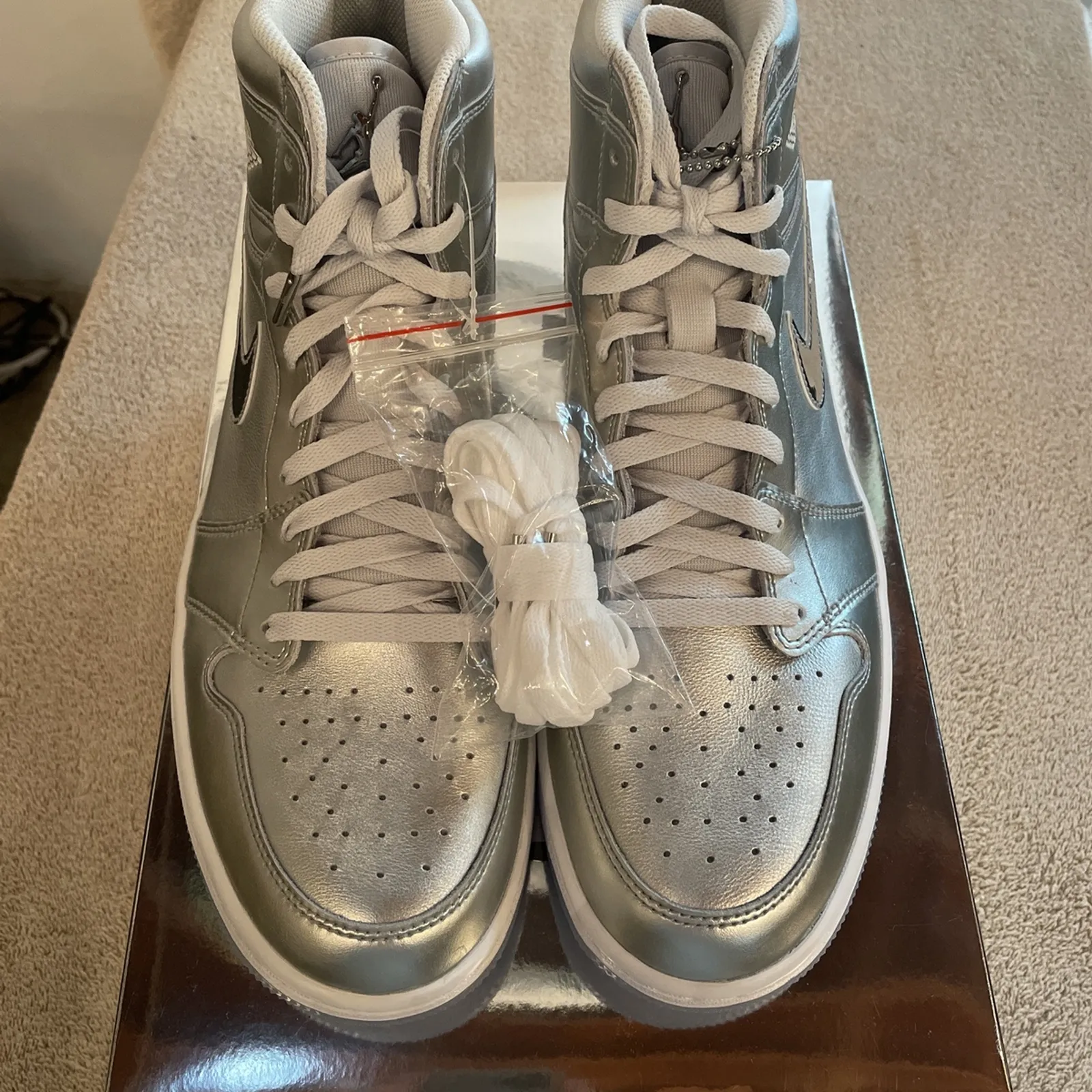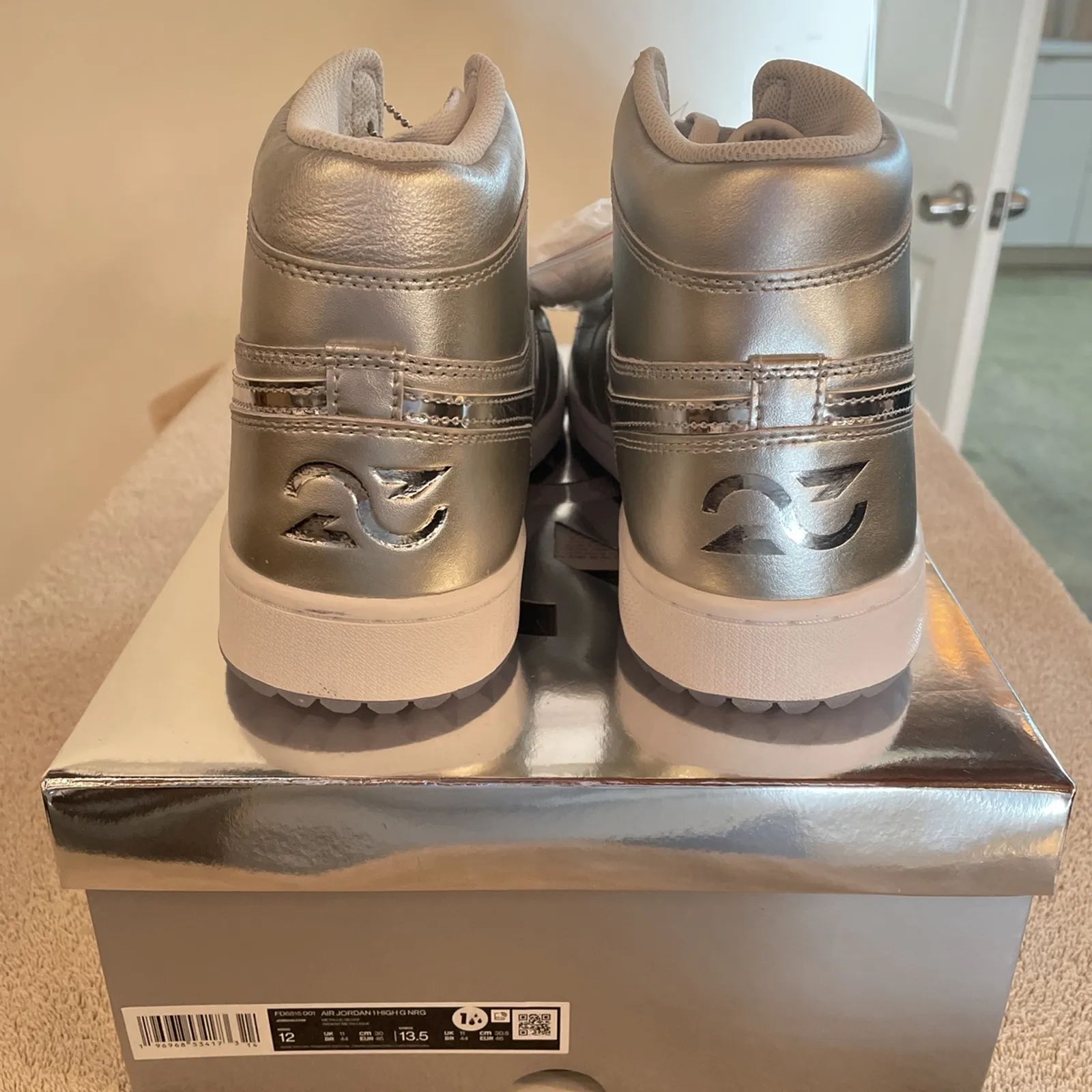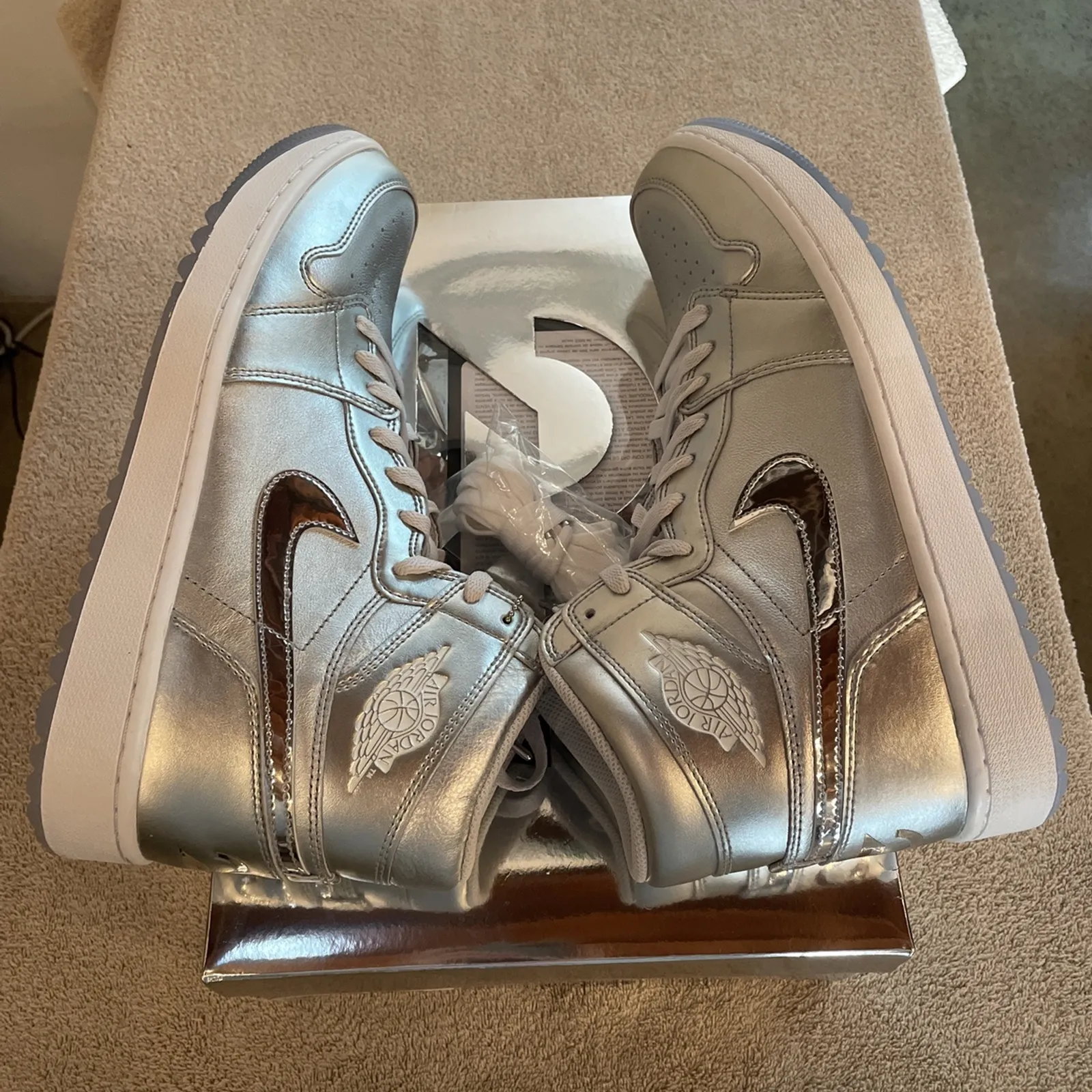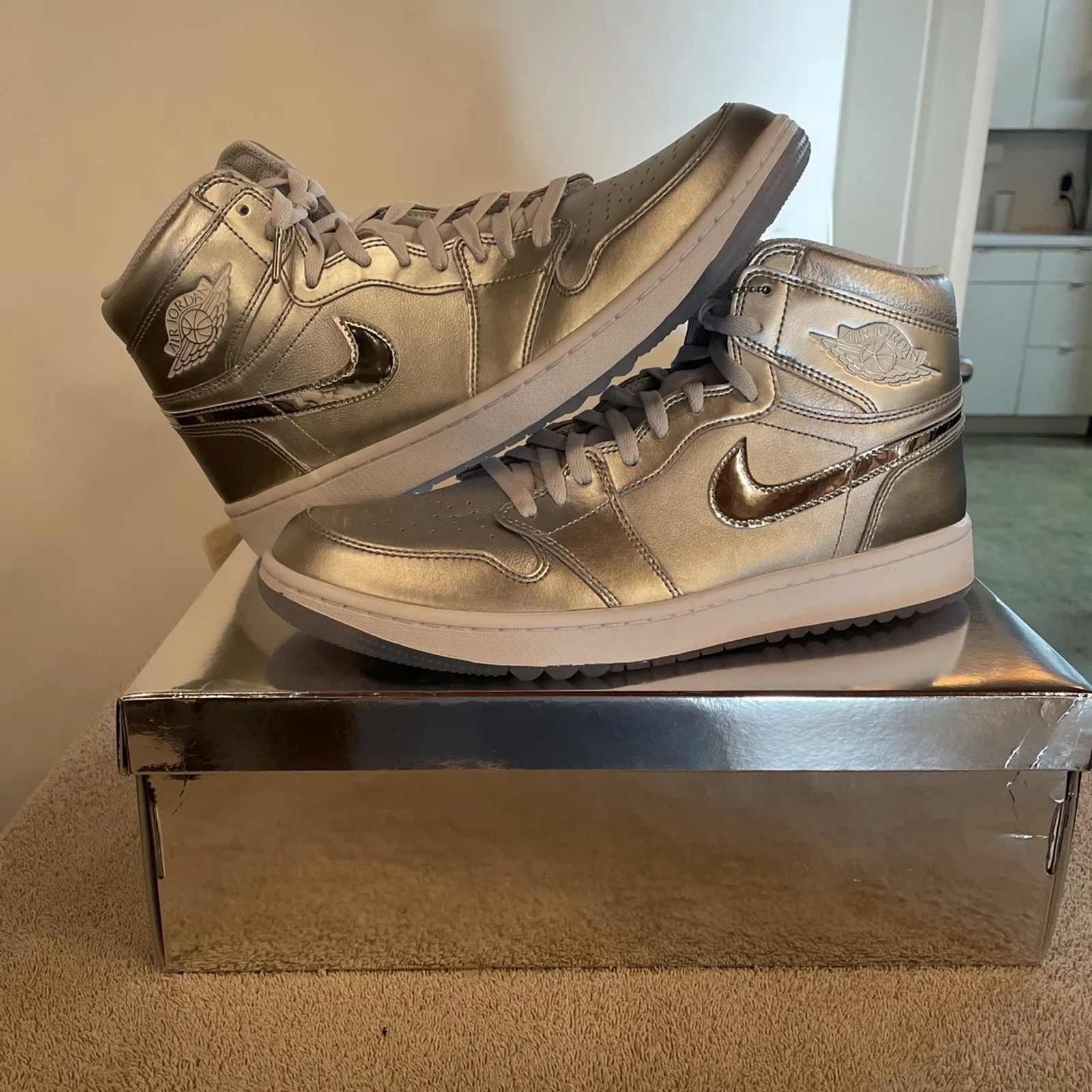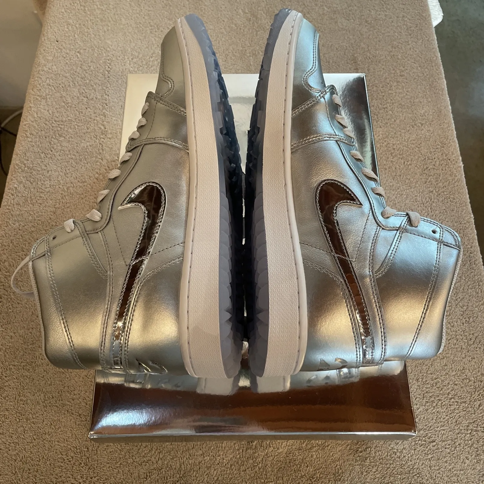 Brand New Nike Air Jordan 1 High G Metallic Silver Golf Shoes Size 12 With Box