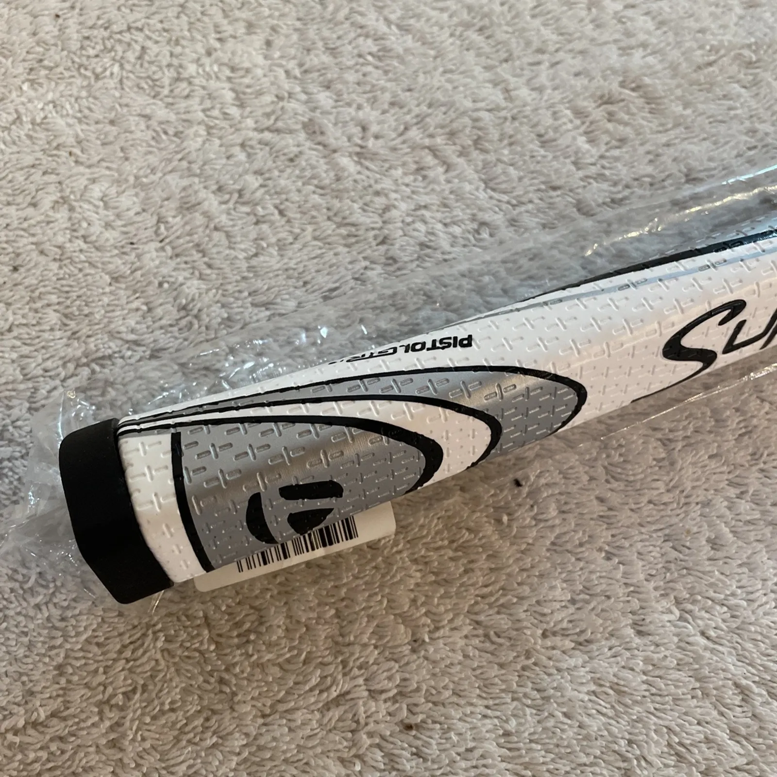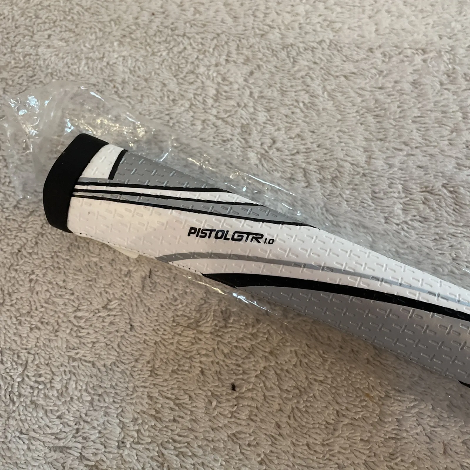 Super Stroke TaylorMade Pistol GTR 1.0 White Putter Grip. Brand New, RARE. This grip was never sold to the public and only produced for TaylorMade. It is brand new in plastic and extremely rare to find brand new and not as a pull off. Only taken out of plastic for pictures. No damage, stains or imperfections.Super fast shipping. Please see our feedback score!We ship twice a day Monday through Saturday. Under most circumstances items will be shipped the same day.