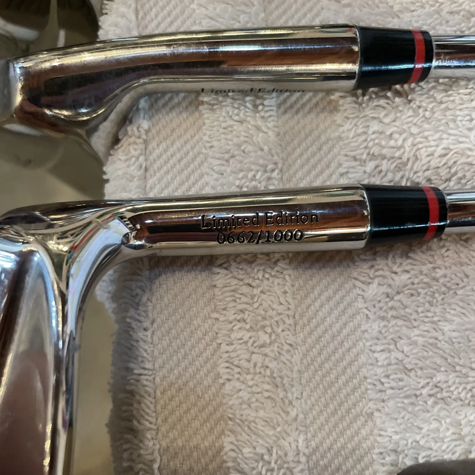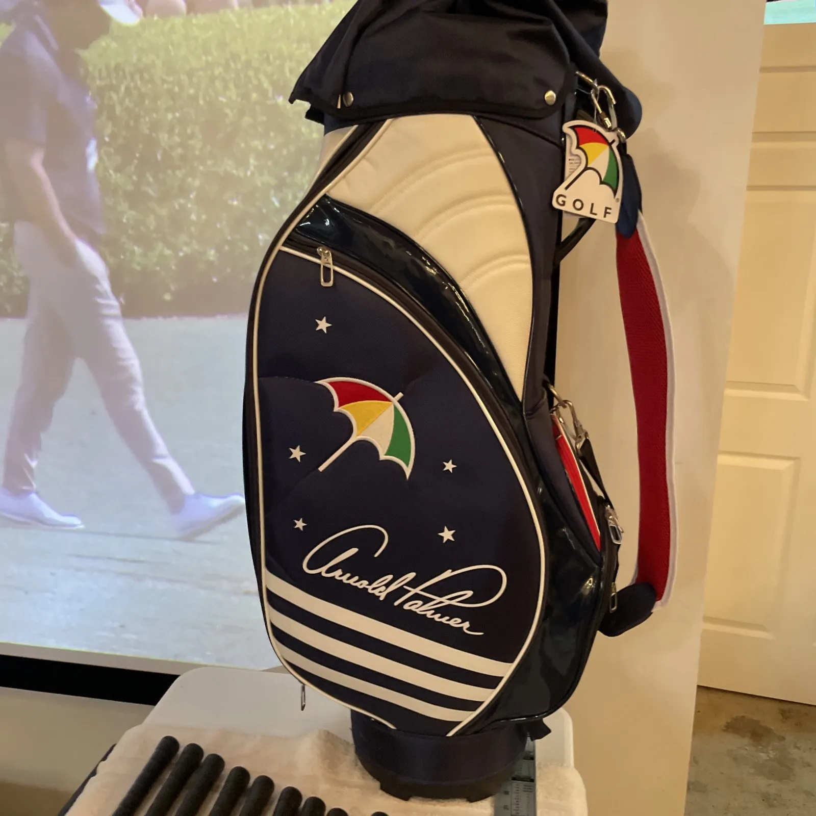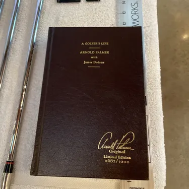 Brand new never used Arnold Palmer, golf bag irons 2-PW, and his book a golfer’s life signed by Arnold. Everything is brand new and has never been used. They were on display in our golf gallery. We may be closing down due to some health reasons. We have a lot of other collector items golf bags from all different tour players. Tiger Woods gear and much much more. See our other listings. This is set number 662/1000. Each iron is stamped on the hosel limited edition 0662/1000. Super rare, great collectible there aren’t very many of these out there on the market for sale. We shipped super fast twice a day Monday through Saturday. Under normal circumstances, your item will ship the same day If you have any questions, please ask us. We also do local pick up.