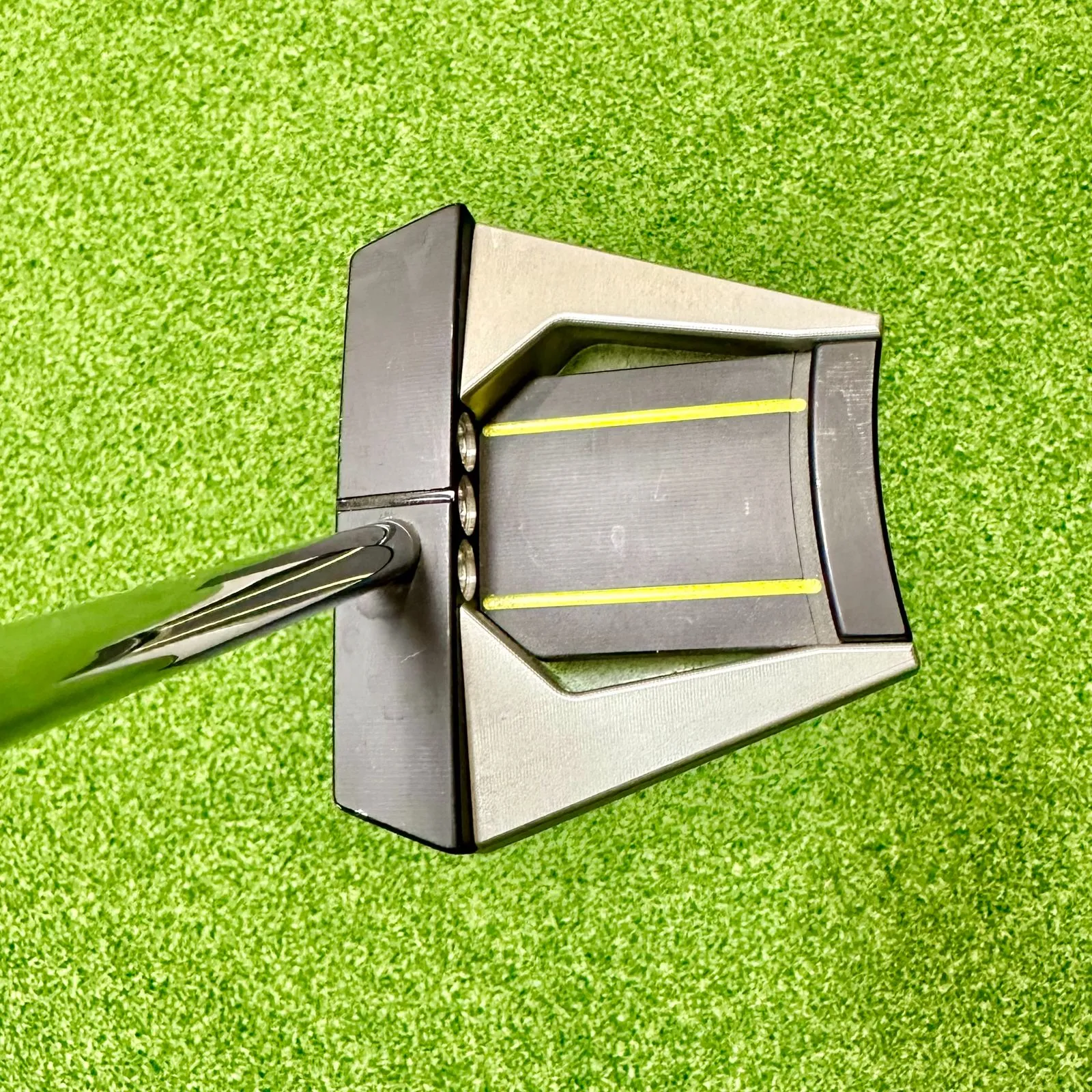 Plastic on sole. The Phantom X line is about offering mallet players as many options as possible. With the face balanced 6 STR, I went with a straight shaft setup for golfers who really want to create a straight-back-straight-through putting stroke. It has all of the racy good looks of the Phantom X 6, just without offset and a straight shaft.