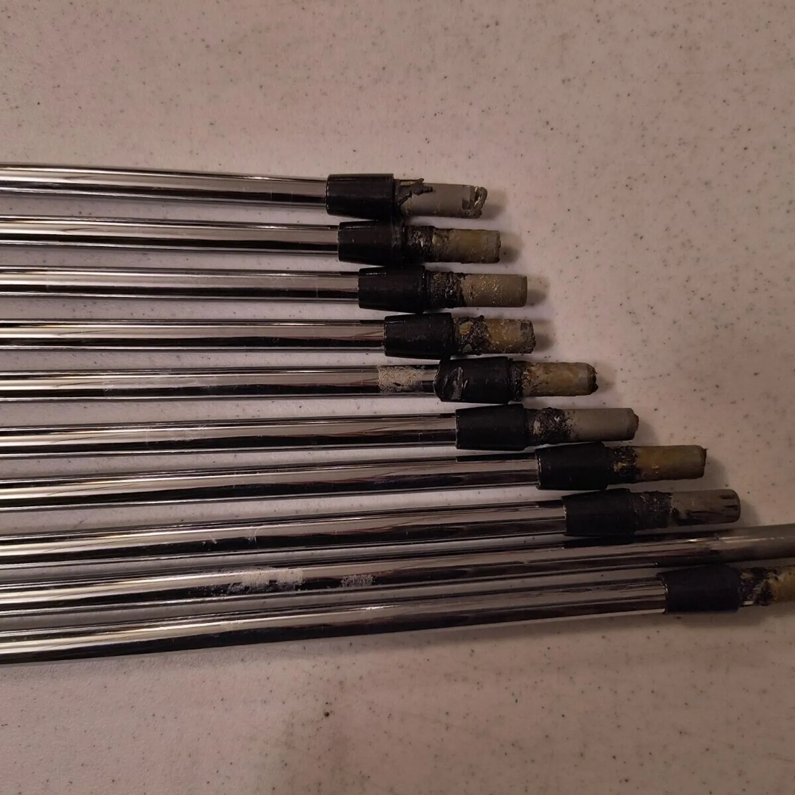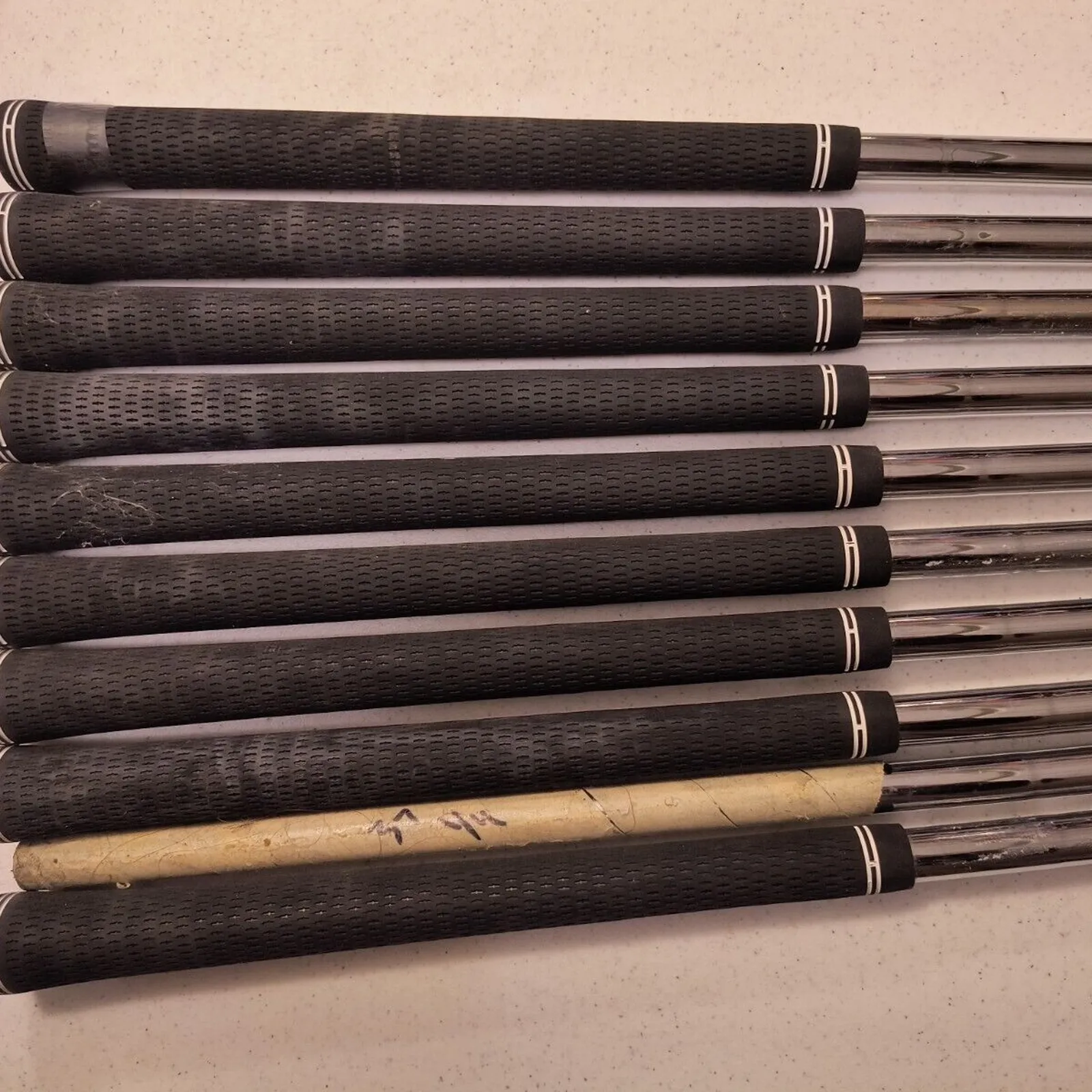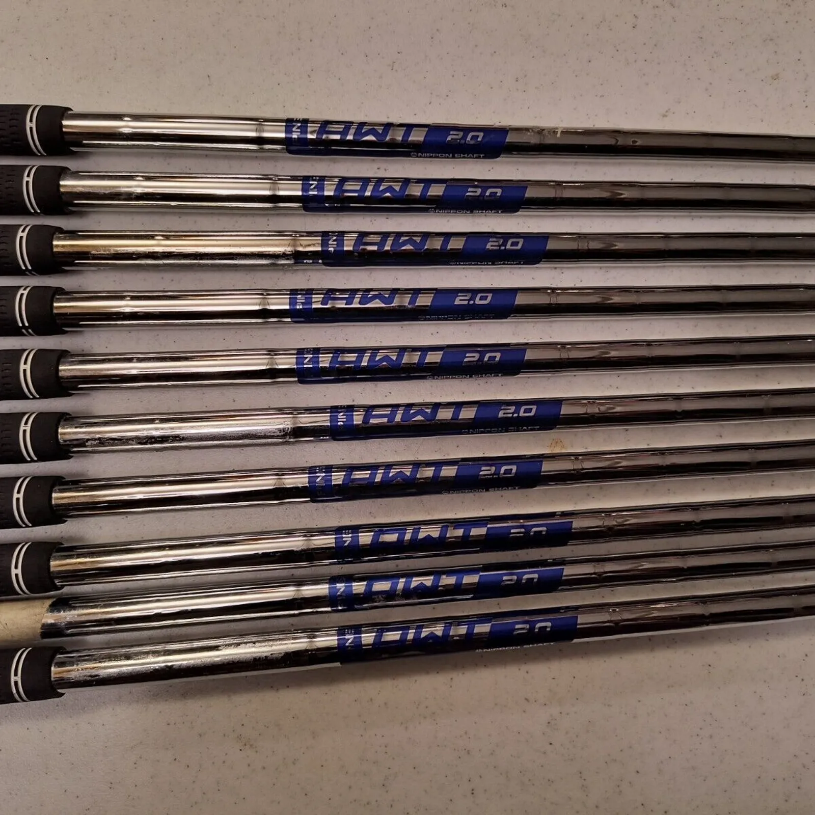 Ping Nippon AWT 2.0 S Stiff Flex 3-PW W W 10 Pc Set .355 Taper Tip Used Pull Shaft. Nippon made Lengths are 37 1/2, 37 1/8, 36 5/8, 36 1/8, 35 1/2, 35 1/8, 34 1/2, 34 3/8, 34, 33 7/8. Condition is "Used".
