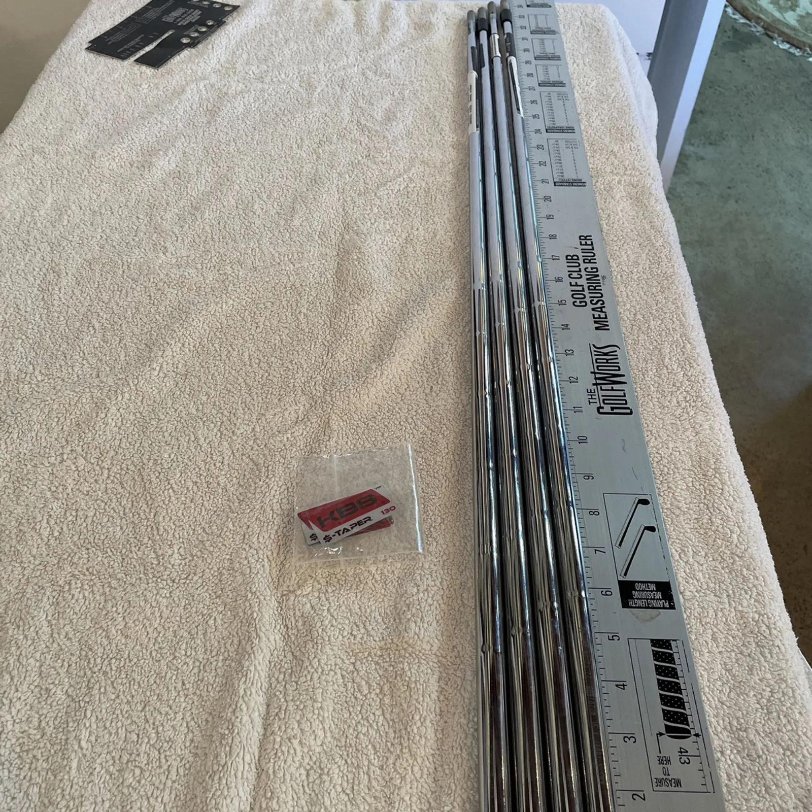 Set of 4 KBS $-Taper 130 Extra Stiff Chrome Iron Shaft Pulls .355” Taper Tip. These are unlabeled and will come with shaft labels to attach. Pulled from a set of brand new clubs. Never used, no damage. Original grips were removed.Super fast shipping. We ship twice a day Monday through Saturday. Please see our 100% feedback score.Under normal circumstances or animal shipped the same day