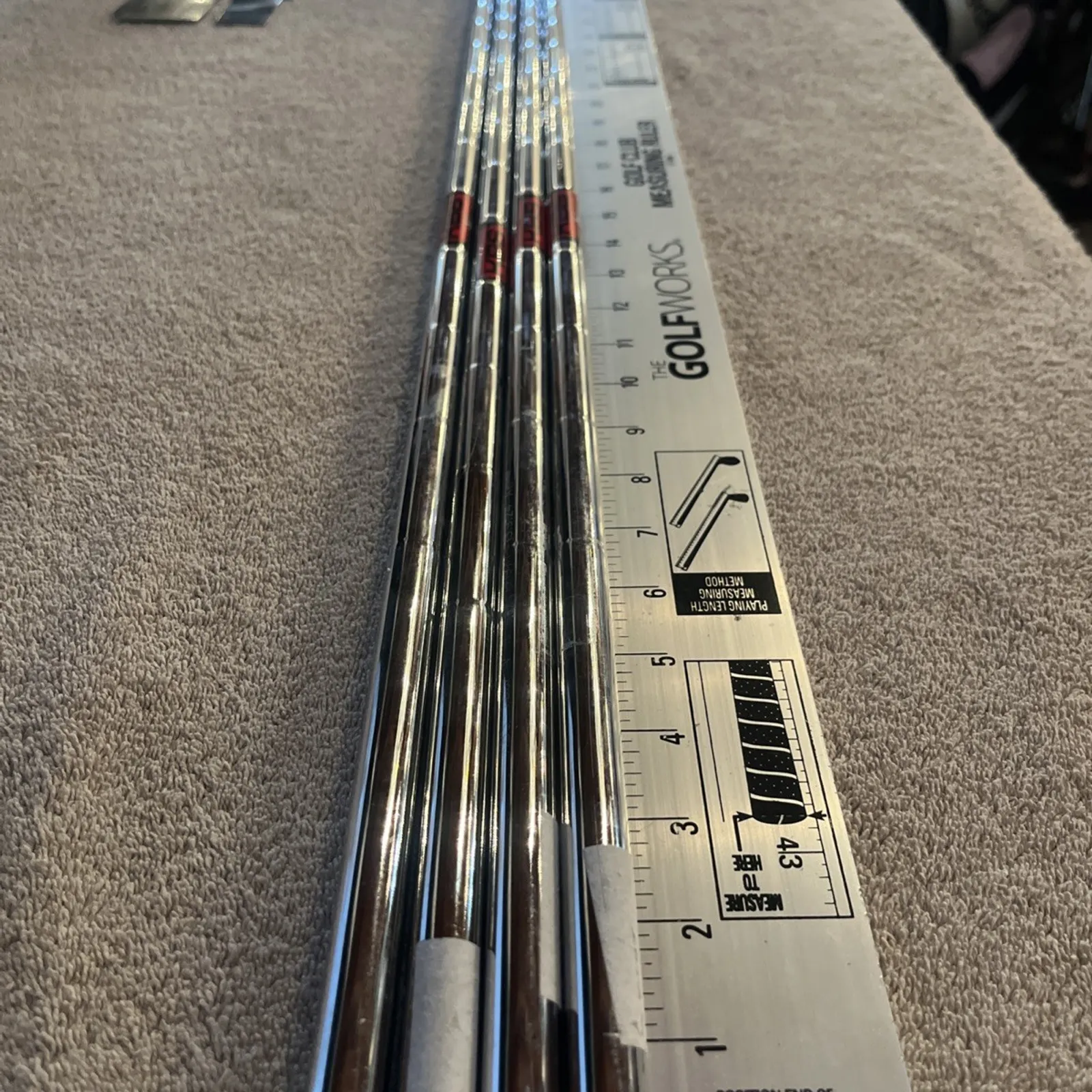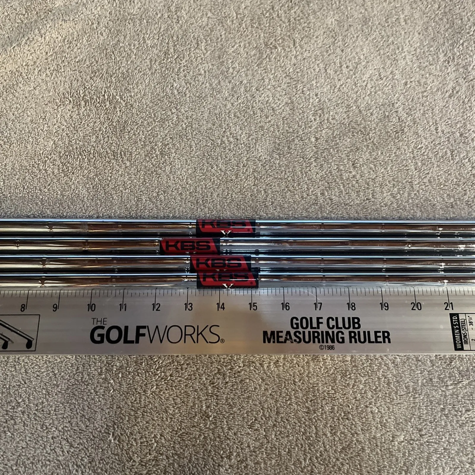 New set of raw KBS Tour V Regular flex iron shafts. Set of 4, .355” tapered tip, 100g. Pulled from a set of brand new clubs. In mint condition with no imperfections. Has custom KBS Golf Experience shaft labels. Grips were removed.Super fast shipping. See our feedback score! We ship twice a day Monday through Saturday. Under most circumstances items will be shipped the same day.