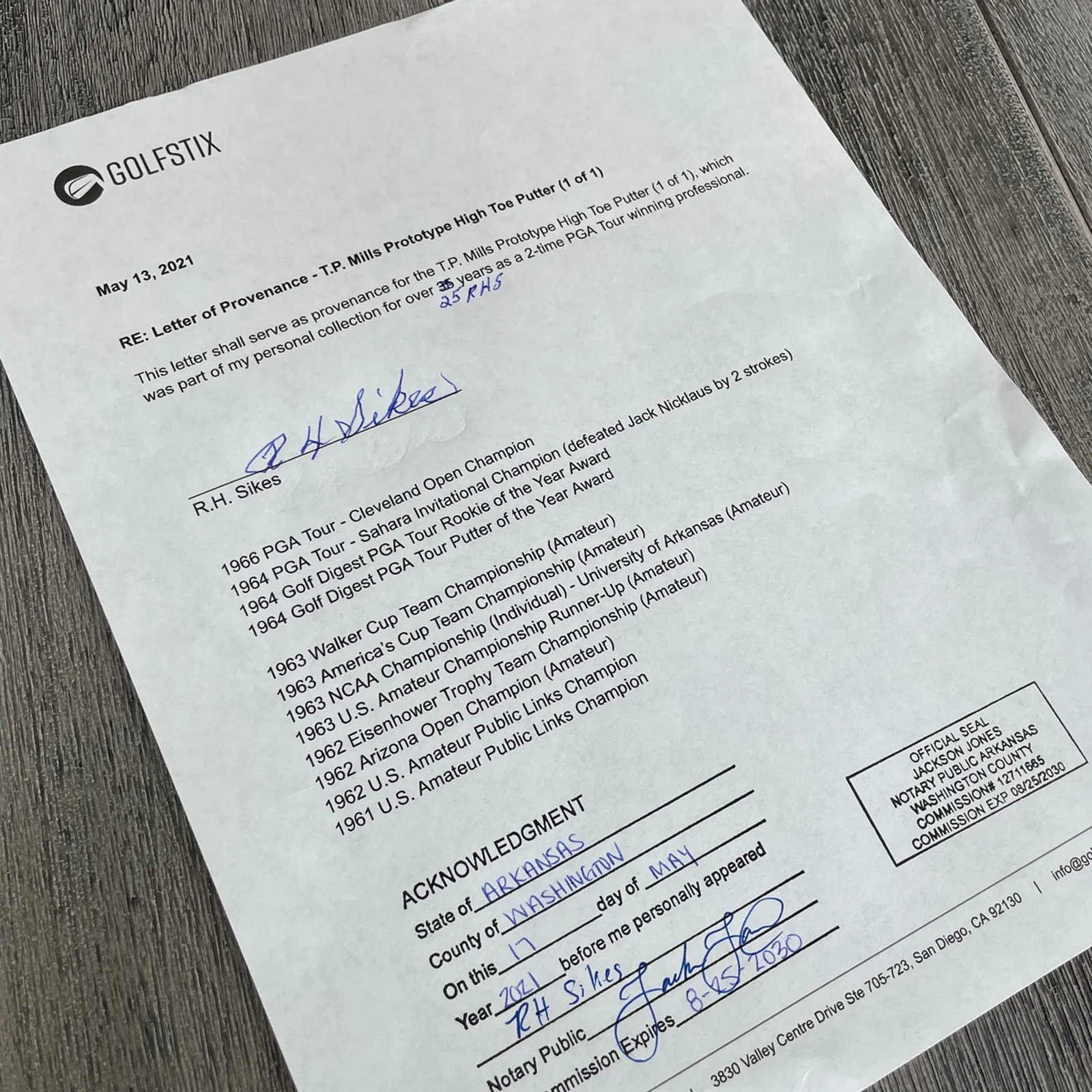 Featuring rare and collectible memorabilia and equipment from current and former PGA and LPGA TOUR players