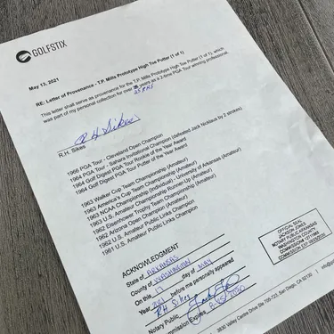 A rare 1 of 1 putter made from by a pioneer in hand-crafted putters, Truett T.P. Mills. Featuring a high toe blade design, this putter also includes handwritten notes from Truett on the sole.
