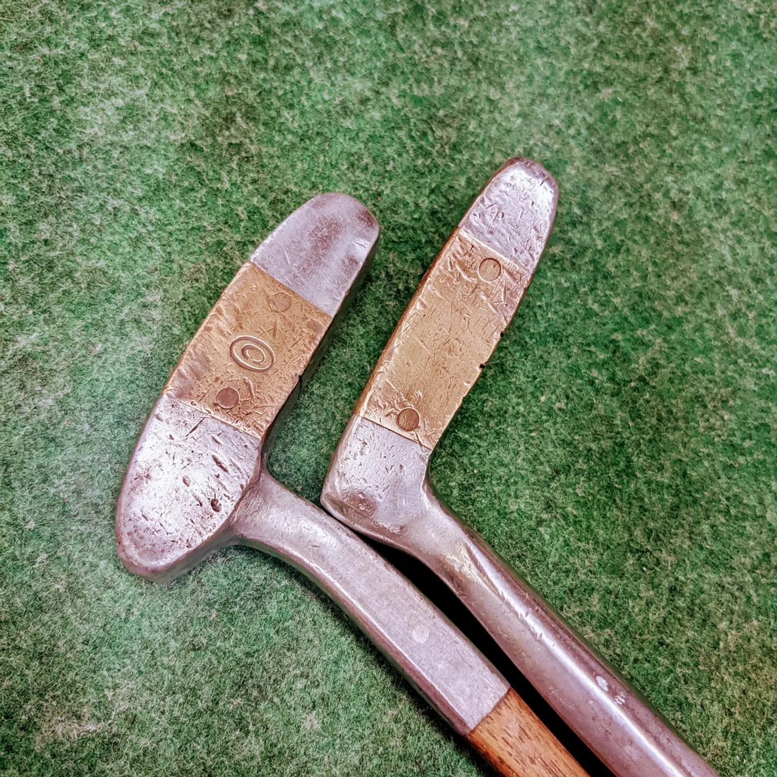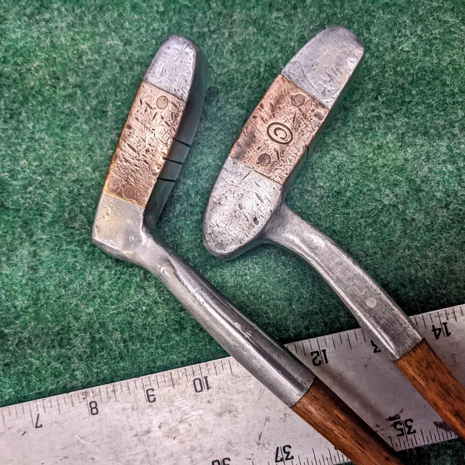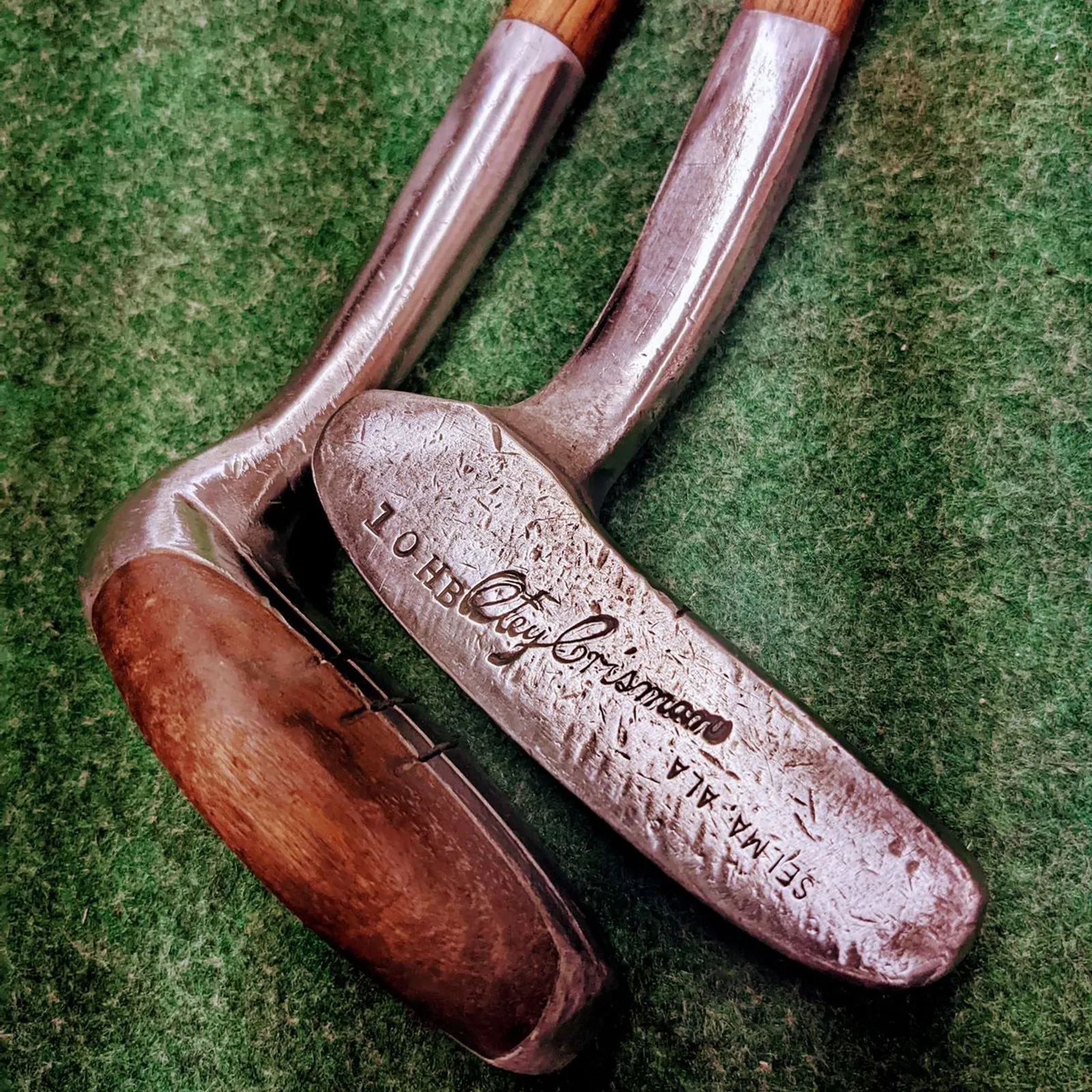 2 Otey Crisman wood shafted putters with original leather grips and end caps