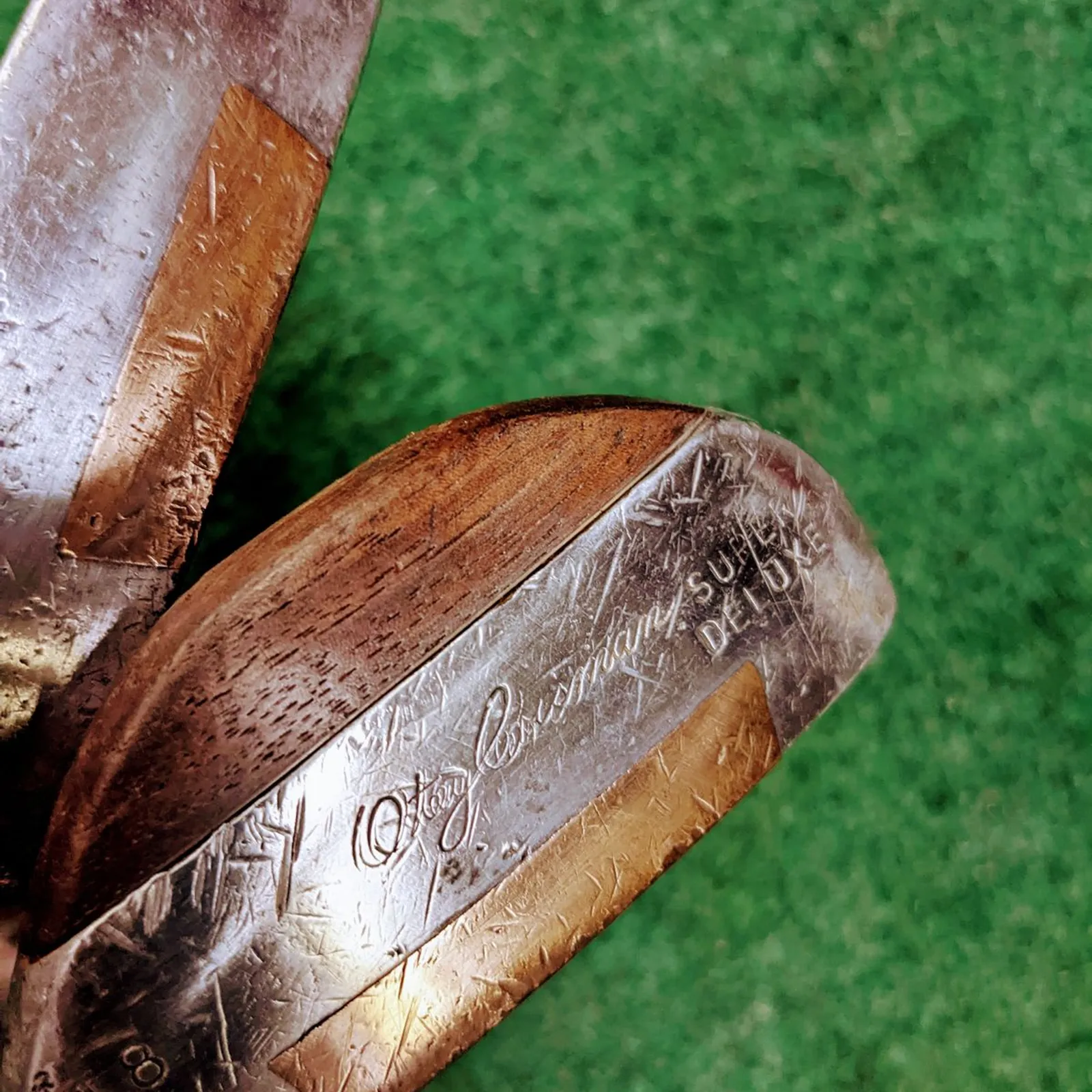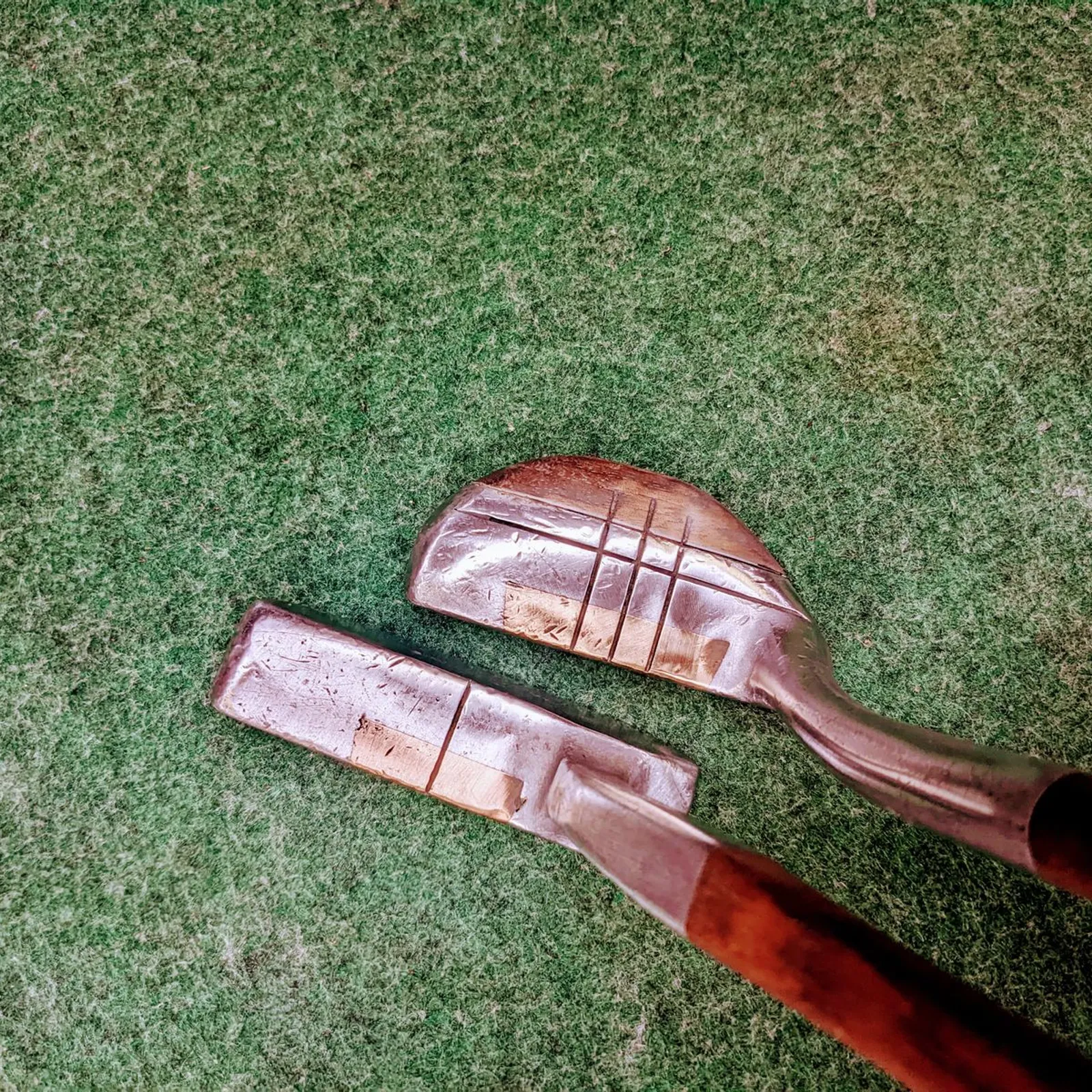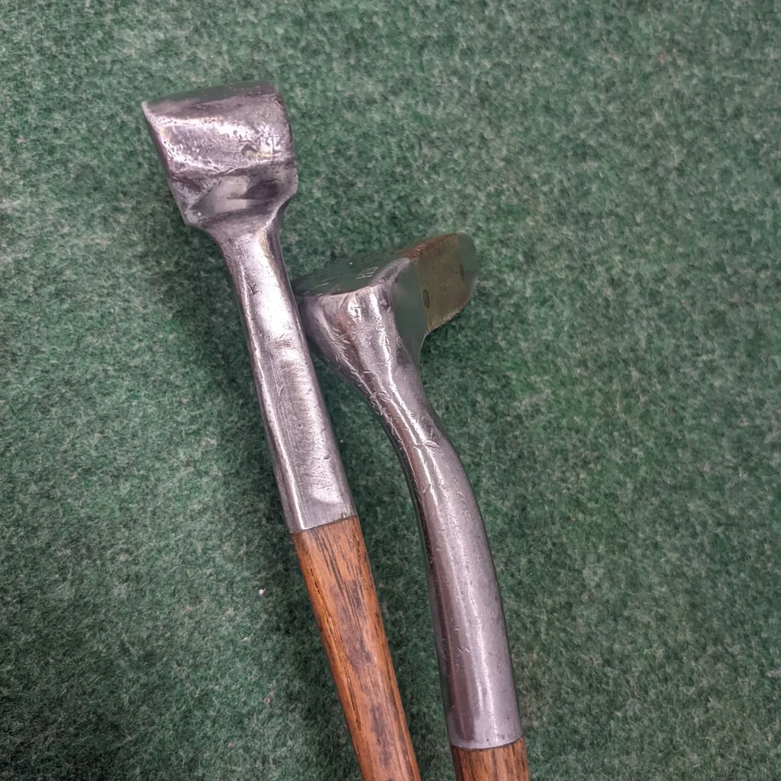 2 Otey Crisman wood shafted putters with original leather grips and end caps