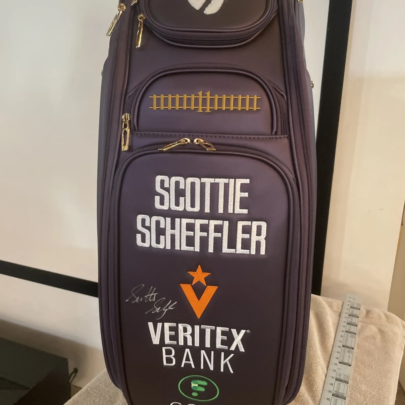Brand new SCOTTIE SCHEFFLER  Signed TaylorMade 2024 British Open staff bag. Super rare collectors item. Brand new condition, ships today! Super fast shipping, see our feedback score. We ship twice a day Monday through Saturday. Under most circumstances items will be shipped the same day. Amazing details on this bag.  Commemorative staff bag celebrates the championship legacy of the British Open Colors of purple, gold, and white symbolize the regal heritage of this year’s venue Gold ring around the top bears the inscription.   “152nd” to mark the 152nd playing at golf’s oldest championsip Latin phrase “Tam Arte Quam Marte” meaning “As Much By Skill As By Strength” is displayed on the handle Gold railroad tracks with the number 11 on the back celebrate one of the course’s most challenging holes Gold ring. Colors of purple, gold, and white symbolize the regal heritage of this year’s venueLatin phrase “Tam Arte Quam Marte” meaning “As Much By Skill As By Strength” is displayed on the handle. Gold railroad tracks with the number 11 on the back celebrate one of the course’s most challenging holesDetails:Celebrate the legacy of the British Open with this singed Taylormade 2024 British Open Golf Staff Bag.  The back of the bag showcases gold railroad tracks with the number 11, paying tribute to one of the course’s most challenging holes. Meticulously designed by TaylorMade, this staff bag is not only a functional piece of golf equipment but also a stunning collector’s item for any golf enthusiast.
