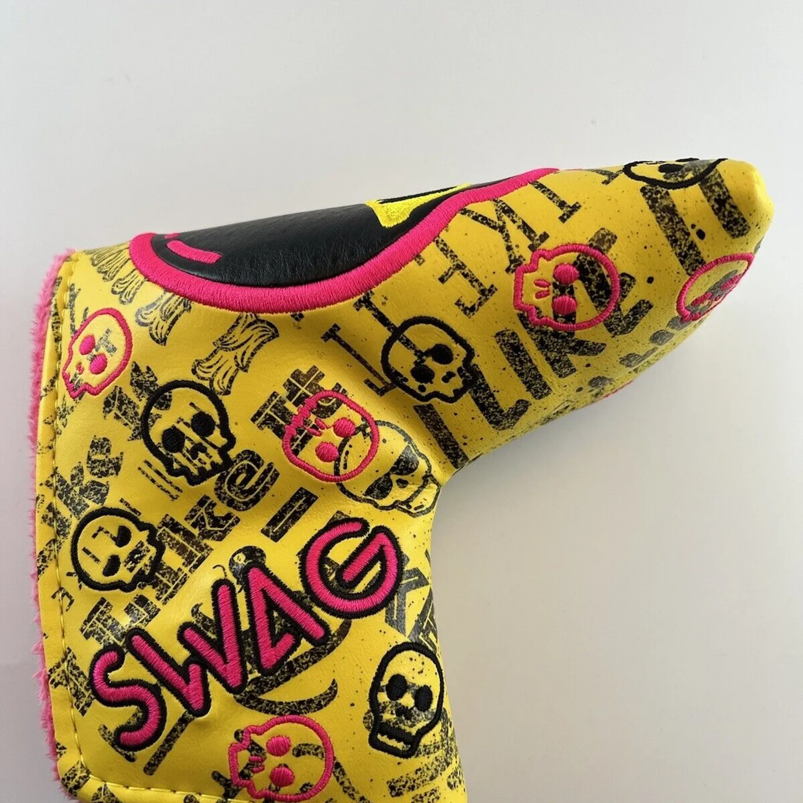 New Swag Golf Perfect Practice Don’t Give A Putt Graffiti Headcover Blade yellow splatter I like it Skull 920253Shipped in a sturdy box with bubble wrap for protection.