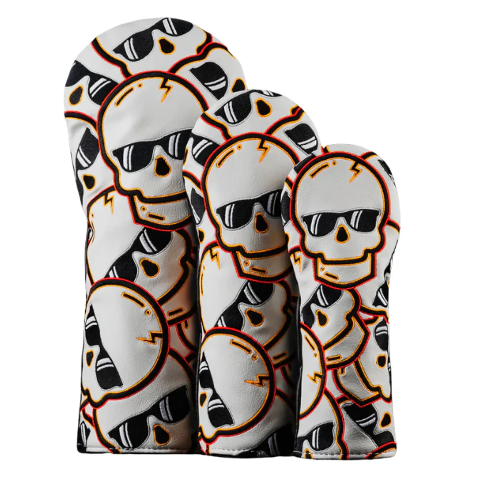 NEW SWAG GOLF'S "ORANGE FLARE STACKED SKULLS 2.0" WOOD COVER SET HEADCOVER