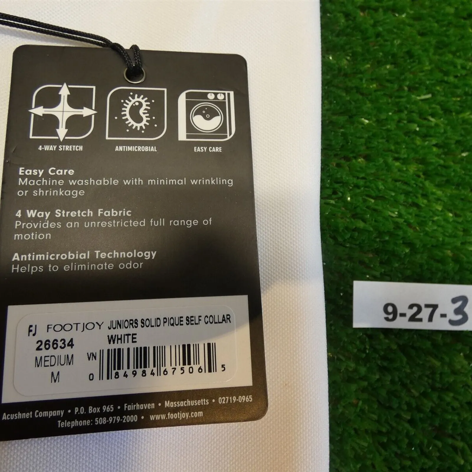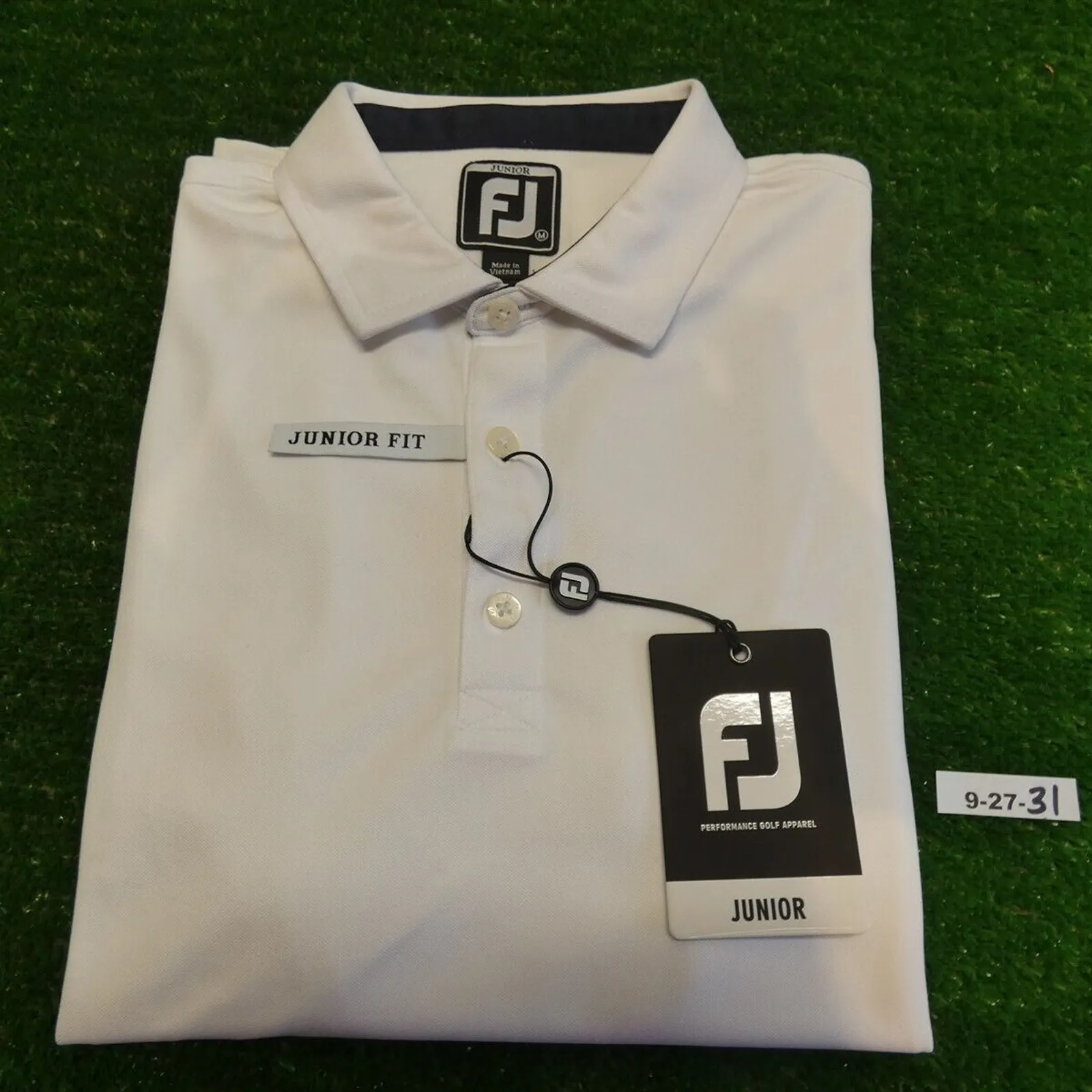 FootJoy Junior Boy's Solid Pique Collar Golf Shirt White Medium 26634